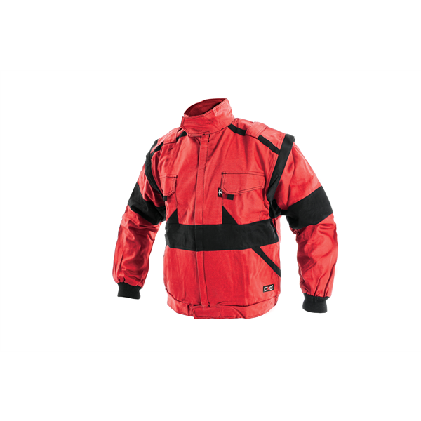 Dámská blůza, odepínací rukávy do manžety, kryté zapínání, kapsa na mobil, pas do gumy. Blůza dámská montérková CXS LUXY s odepínatelnými rukávy, červená s černými doplňky, kepr 100% bavlna 260g/m2, vel.38-58