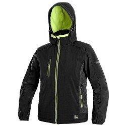 Pánská, softshell bunda, odolná proti vodě a větru, odepínací kapuce, stahování v dolním okraji, rukávy zakončeny gumičkou, černé reflexní výpustky, fleecový límec i vnitřní strana bundy, TPU membrána, odolnost materiálu proti průniku vody (mimo oblast švů a mimo materiálu kolem kapes) 10 000 mm, paropropustnost 3 000 g/m2/24 hod, na levém rukávu kapsička na zip, 2 spodní kapsy na zip, jedna náprsní kapsa. Pánská, softshell bunda, barva černo-žlutá, vel. XS-4XL