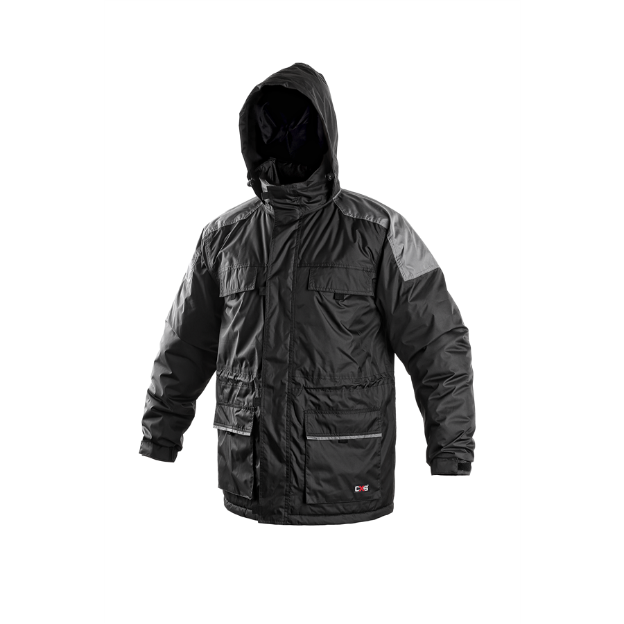 zakončené regulovatelnou manžetou, stahování v pase, lepené švy, 4 vnější kapsy
