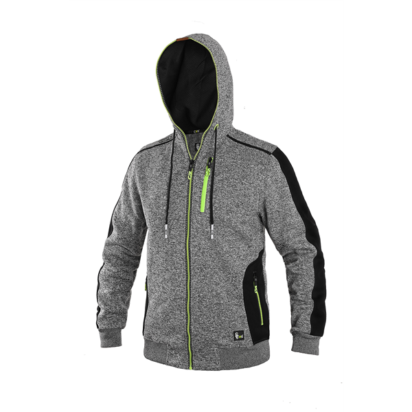 Pánská bunda z pleteniny, kombinace materiálů, kapuce napevno, doplňky v