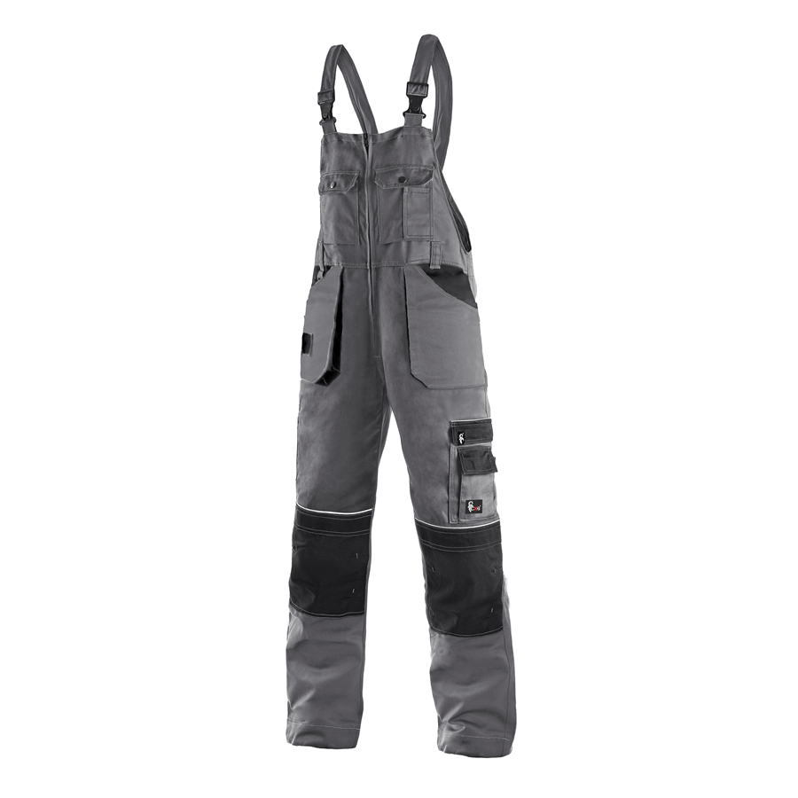 Pánské kalhoty s náprsenkou - zkrácená varianta na výšku 170-176cm, poutka na opasek, zdvojená kolena s možností vložení kolenních výztuh, boční multifunkční kapsy, přední kapsy, poutka na nářadí, reflexní doplňky. Doporučené použití: stavebnictví, strojírenství, lehký průmysl, automobilový průmysl, logistika, skladová manipulace, spedice, autoservisy, údržba, montáže, zemědělství, zahrada, hobby. Kalhoty pánské s náprsenkou, ORION šedo-černé, reflexní doplňky, kepr 60% bavlna 40% polyester 280g/m2, zkrácená varianta na výšku 170-176cm, vel. 46-64