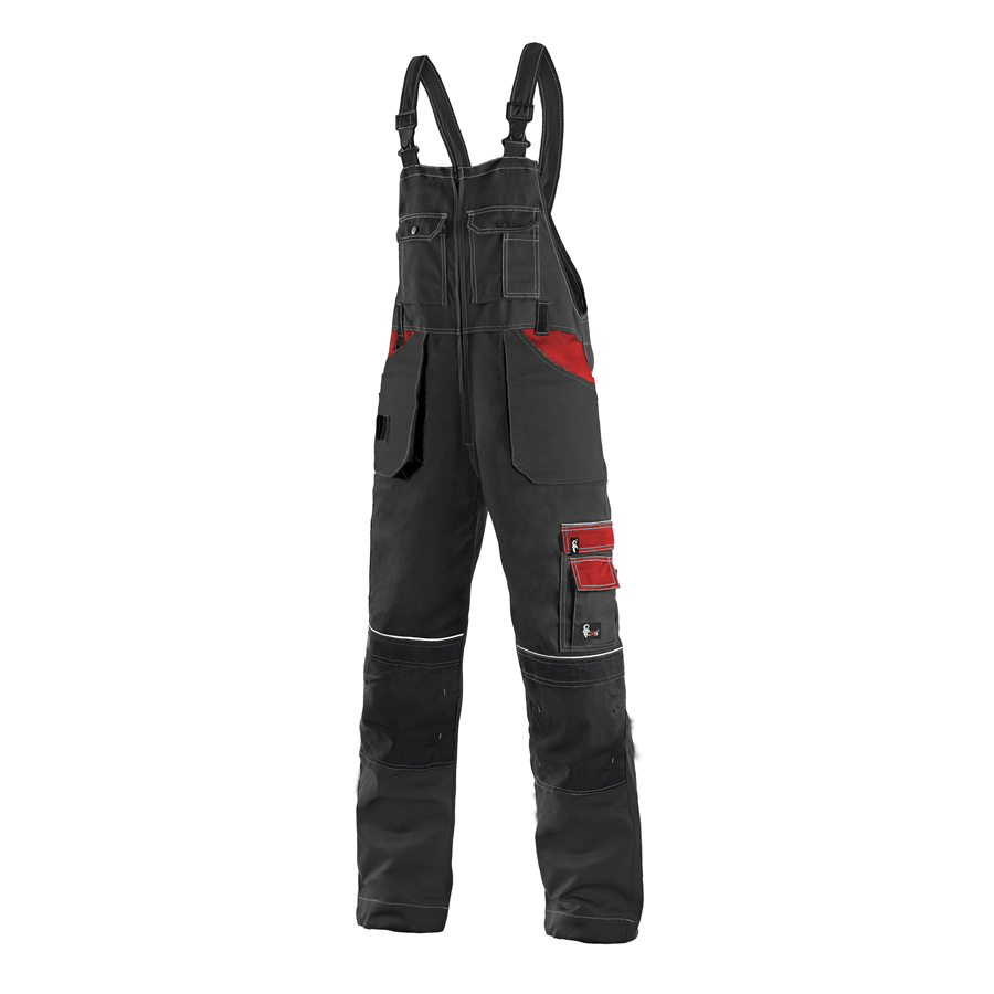 Pánské zateplené zahradníky s náprsenkou, zdvojená kolena s možností vložení kolenních výztuh, klínové přední kapsy a našité kapsy s poutky na nářadí, boční multifunkční kapsy, náprsenka s kapsami a rozepínáním uprostřed, zateplení flanelem, reflexní doplňky. Kalhoty s náprsenkou ORION pánské, zimní, černo-červené, zateplení flanelem, reflexní doplňky. Svrchní materiál: kepr 60% bavlna 40% polyester 280g/m2. Podšívka: flanel 100% bavlna, vel. dvojčíslí 48-50, 52-54, 56-58, 60-62