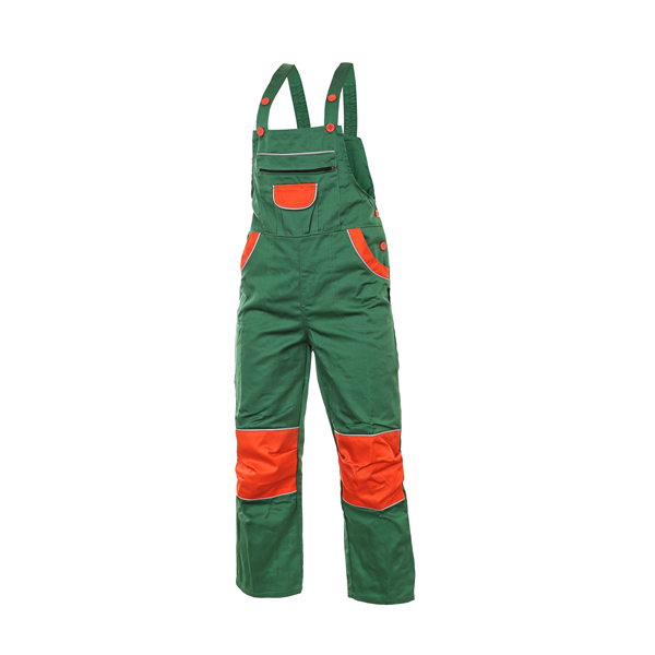 Dětské kalhoty s náprsenkou, zesílený sed a kolena, náprsní kapsy, pas v zadní části do gumy, reflexní doplňky.