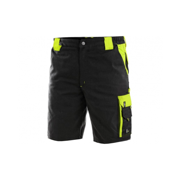 Pánské kraťasy s poutky na opasek, přední klínové kapsy, zadní kapsy s klopama, boční multifunkční kapsy, kapsa na mobil. Kraťasy pánské SIRIUS BRIGHTON, černo-žluté, 65% polyester 35% bavlna 190g/m2, vel. 46 - 64