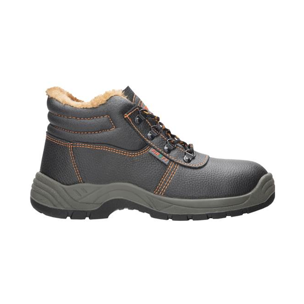 kotníková obuv zateplená umělým kožíškem měkčená bandáž pro pohodlné nošení podšívka a kontrastní prošití v oranžové barvě PU2D podešev je odolná olejům, pohonným hmotám a kontaktnímu teplu do 110°C, antistatická materiál: hovězí useň velikosti: 36 - 50 barva: černo-oranžová