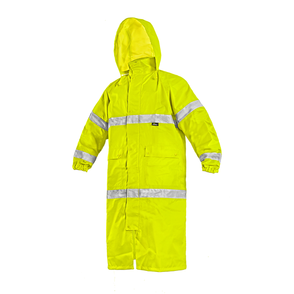Výstražný plášť s reflexními pruhy, nepromokavý, lepené švy, odepínací