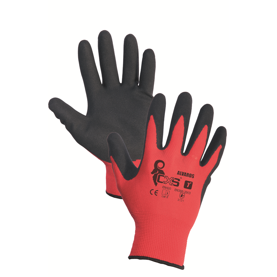 Rukavice povrstvené ALVAROS, červeno-černé, vel. 10
