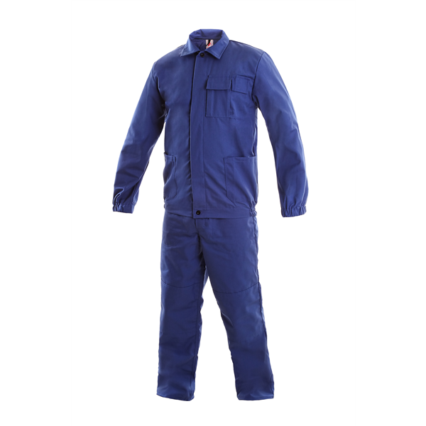 pasu. Pánský oblek antistatický, modrý, mat. 65% polyester 35% bavlna se zatkanou vodivou mřížkou 240g/m2, vel. 48-64