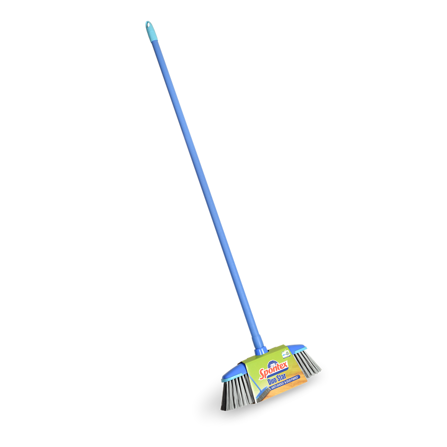 Vyzkoušejte sílu dvoufázového zametání s plastovým vysoce kvalitním smetákem Spontex. Jeho kouzlo spočívá ve speciálním druhu vláken: jemné černé štětiny zametají prach a silné šedé štětiny smetou těžší nečistoty. Šetrné silikonové hrany po obvodu smetáku ochrání váš nábytek i podlahu před poškrábáním. Násada smetáku Duostar je 120 cm dlouhá a z kvalitního kovu, takže vydrží ledacos. Kdybyste ale přece jen sháněli novou, najdete ji tady: