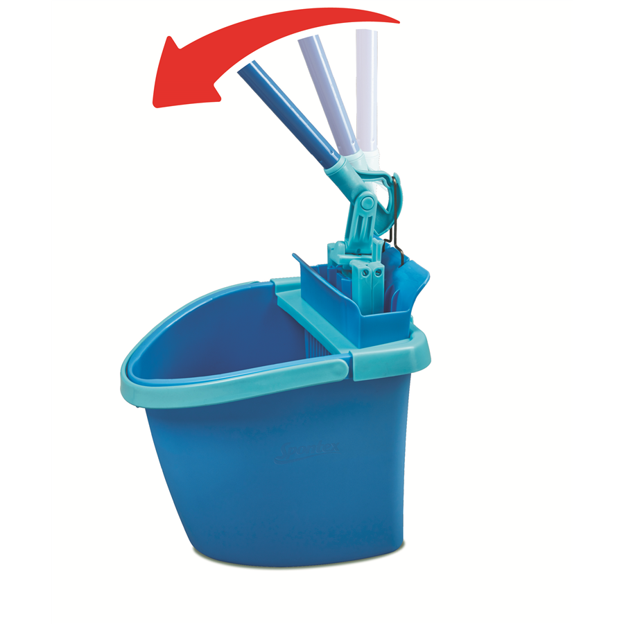 Mop s manuálním ždímacím systémem. Díky unikátnímu háčku je ždímání mopu ergonomické, účinné a bez potřeby vyvinutí úsilí.