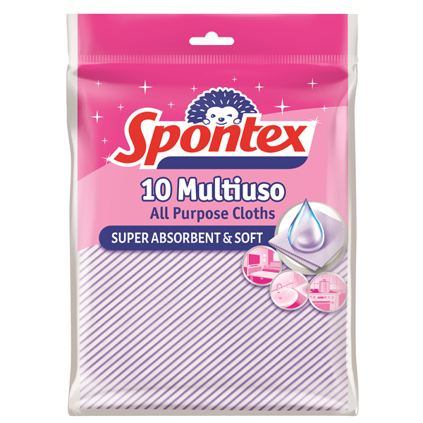 Rozměry Spontex Multiuso utěrky: 36x46 cm. Jedno balení obsahuje 10 kusů utěrek ve fialovém provedení.