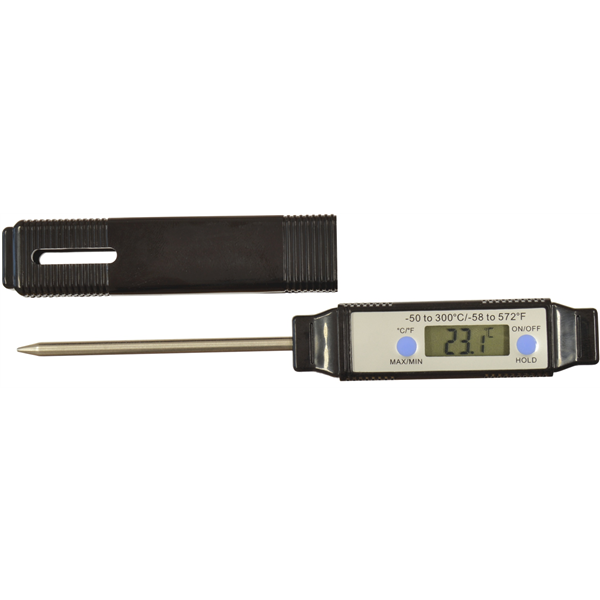 Plastové držadlo, kovový hrot 73mm, rozsah měření od -50 do +300°C.