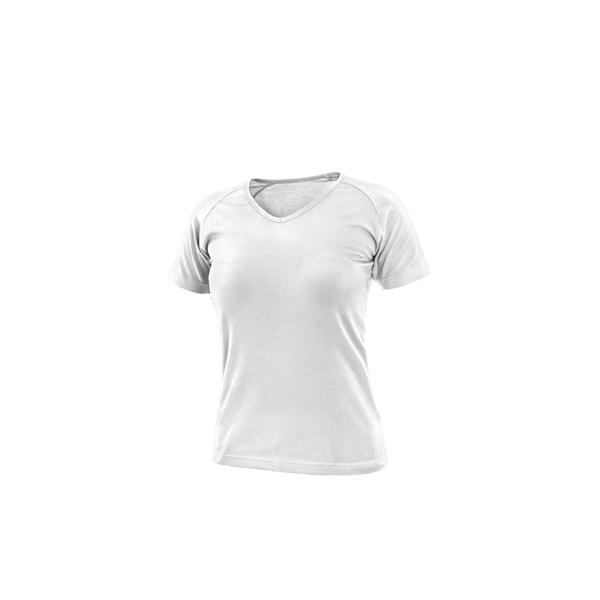 Dámské tričko s průkrčníkem do V. Krátký rukáv raglánového typu. Střih zvýrazňující dámskou postavu a elastan pro pružnost a dlouhodobé udržení tvaru. Finální silikonová úprava materiálu, která zajišťuje vyšší měkkost, rozměrovou stálost a omezuje žmolkovatění. Saténová etiketa. Vhodné pro potisk a výšivku. Dámské tričko do V, krátký rukáv, 95% bavlna, 5% elastan, 180 g/m2, barvy: černá, bílá, červená, tyrkysová, vel. XS-2XL