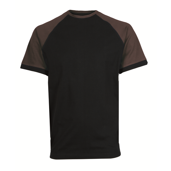 Tričko s krátkým rukávem, raglanového střihu, kulatý průkrčník s 5% elastanu, zdvojené švy, postranní švy, finální silikonová úprava materiálu, která zajišťuje vyšší měkkost a pružnost, rozměrovou stálost a omezuje žmolkovatění. Tričko s krátkým rukávem, dvoubarevné, 100 % bavlna, 180 g/m2, barva: černo-hnědá, černo-modrá, oranžovo-šedá, červeno-černá, černo-šedá, vel. S - 3XL