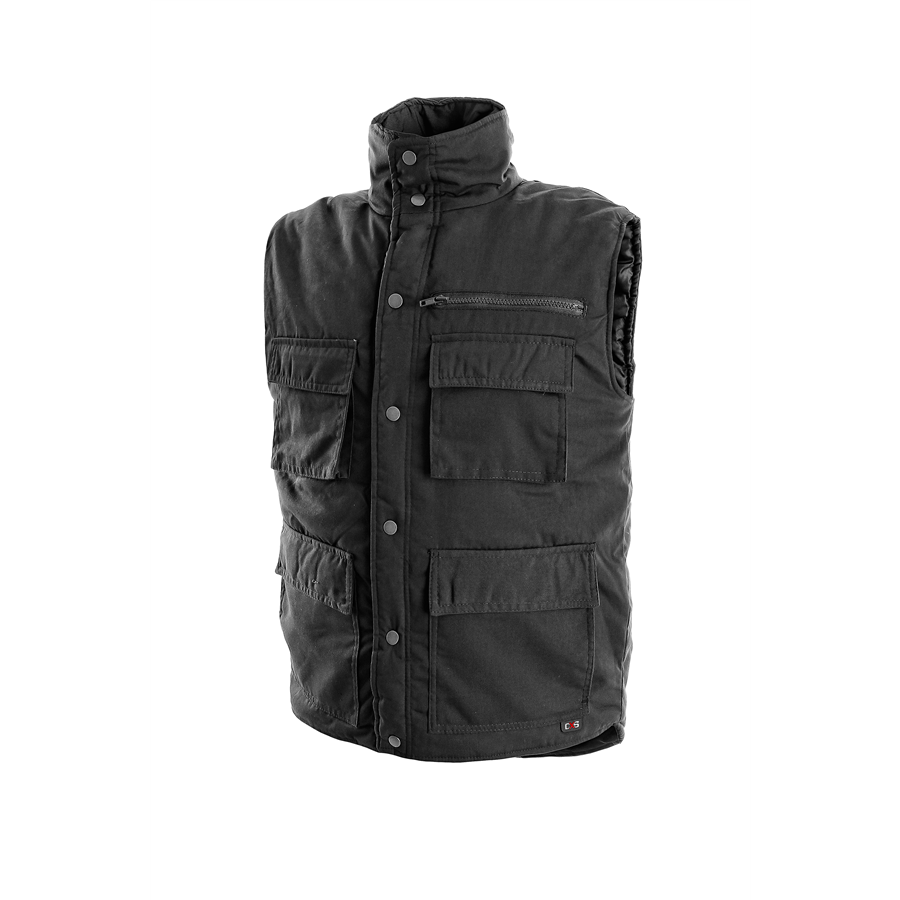 Zateplená vesta, 5 kapes. Vesta zateplená, materiál bavlna-polyester, barva černá, vel.M-3XL