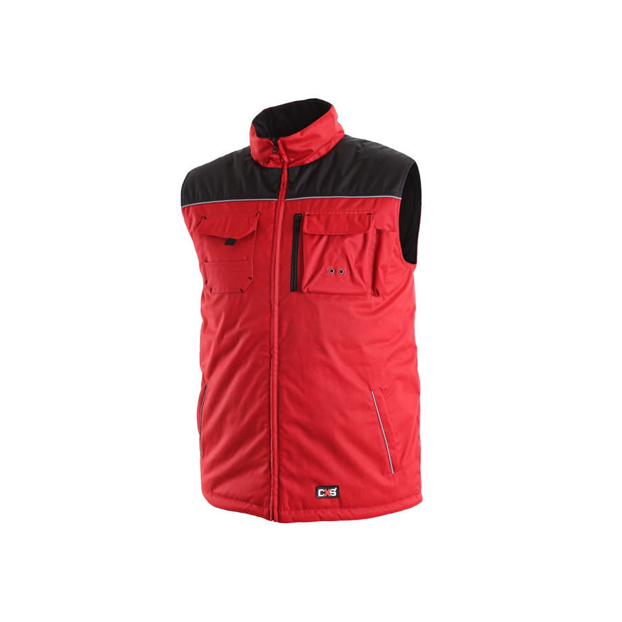 Zateplená vesta, voděodolná, s fleecovým límcem, reflexní výpustky, stahování v dolním okraji, voděodolnost 2000mm. Vesta zateplená, barva červeno-černá, vel.S-3XL
