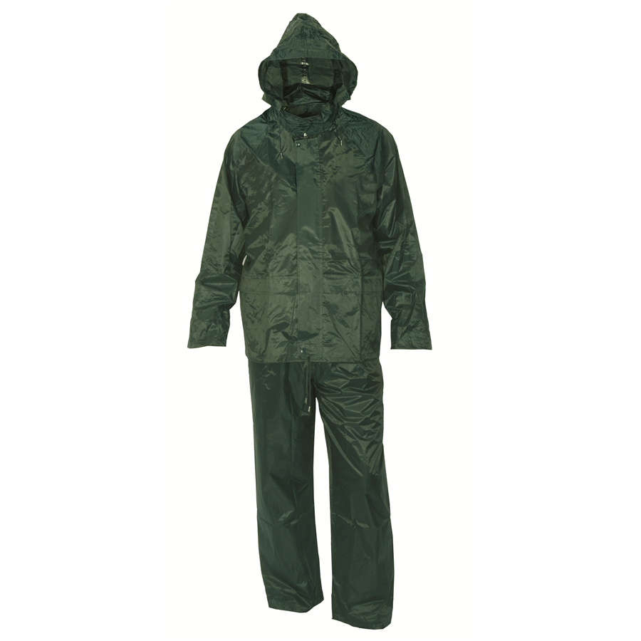 Voděodolný oblek, kalhoty v pase do gumy, blůza 3/4 s kapucí v límci, zapínaní na zip, nižší hmotnost, v praktickém balení. Pogumovaný oblek- kalhoty v pase do gumy, blůza 3/4 s kapucí, zapínaní na zip, nižší hmotnost, materiál nylon-PVC, barva zelená, vel. M-4XL.