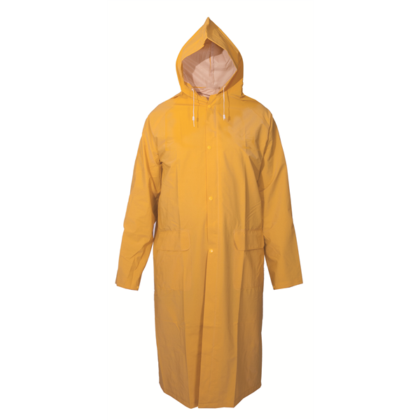 Voděodolný plášť, s kapucí, délka 120 cm. Pogumovaný plášť- dlouhý s kapucí, délka 130 cm, materiál polyester-PVC, barva žlutá, M-4XL.