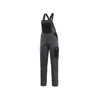 Dámské montérkové kalhoty s náprsenkou, z lehkého materiálu, náprsní kapsa s klopou, přední klínové kapsy, boční kapsa s klopou, kapsa na skládací/svinovací metr, zadní jednoduchá kapsa, šle vzadu na gumu. Díky odlehčené gramáži vhodné pro práci nejen v letním období, ale také celoročně ve vytápěných provozech.